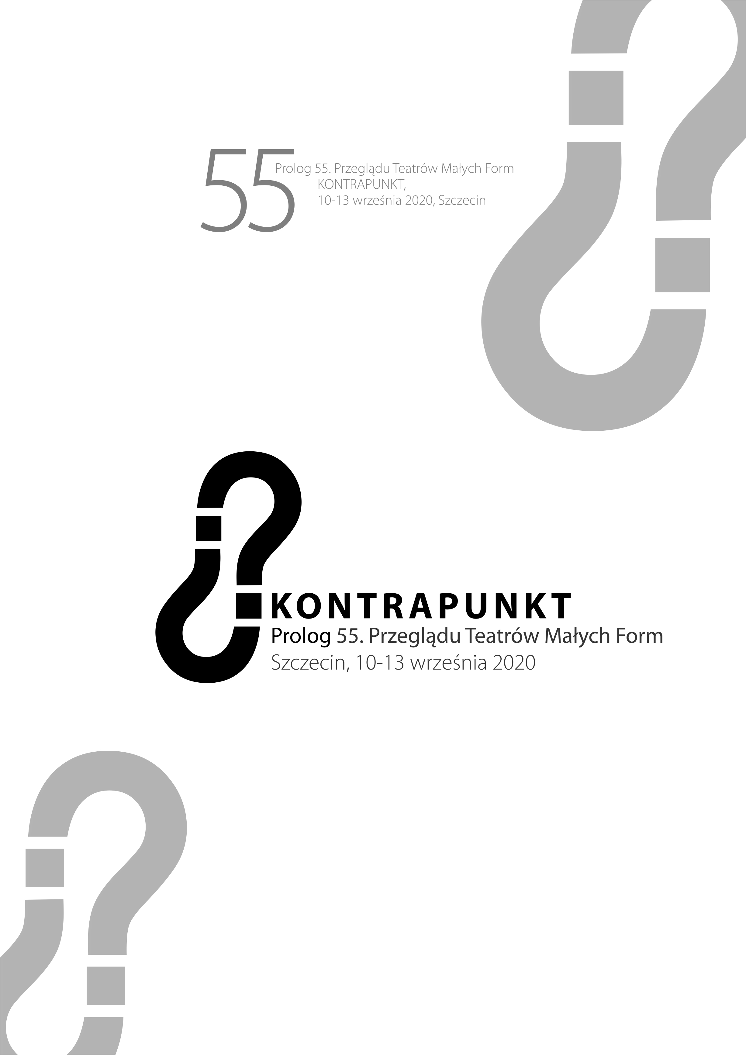 Prolog 55. Kontrapunktu rozegra się między 10 a 13 września 2020 roku. Główną sceną będą przestrzenie Centrum Kultury Euroregionu Stara Rzeźnia. Wydarzenia plenerowe zaplanowano na placu Solidarności – dachu Muzeum Narodowego w Szczecinie – Centrum Dialogu Przełomy oraz na placu przy Nabrzeżu Starówka na Łasztowni. W programie znalazła się także propozycja dla najmłodszych widzów – już na scenie Domu Kultury 13 Muz.