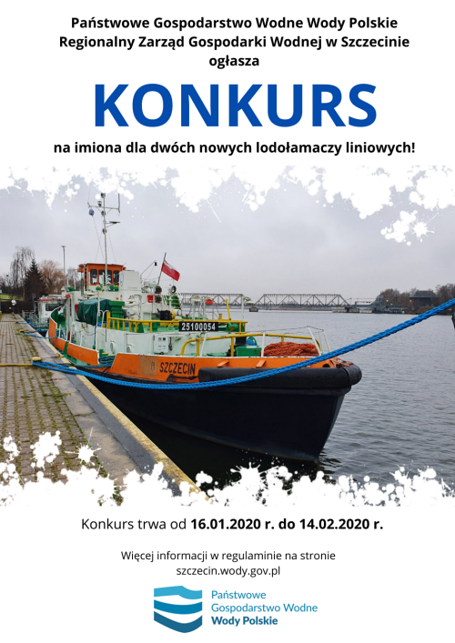 Regionalny Zarząd Gospodarki Wodnej w Szczecinie zachęca do udziału w konkursie na imiona dla dwóch lodołamaczy liniowych, które jesienią 2020 roku zasilą flotę naszej instytucji. Zachęcamy do wysyłania propozycji, z których kapituła konkursowa wybierze dwóch zwycięzców oraz przyzna dwa wyróżnienia.
